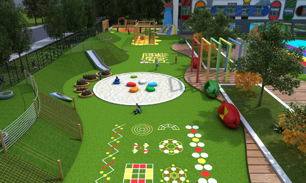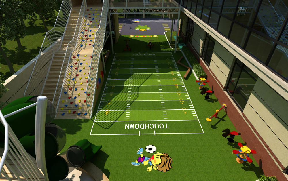 根據(jù)幼兒園教學理念及整體裝修風格,確定幼兒園操場設(shè)計風格,規(guī)劃操場體育游戲功能區(qū),為客戶選擇適的功能產(chǎn)品